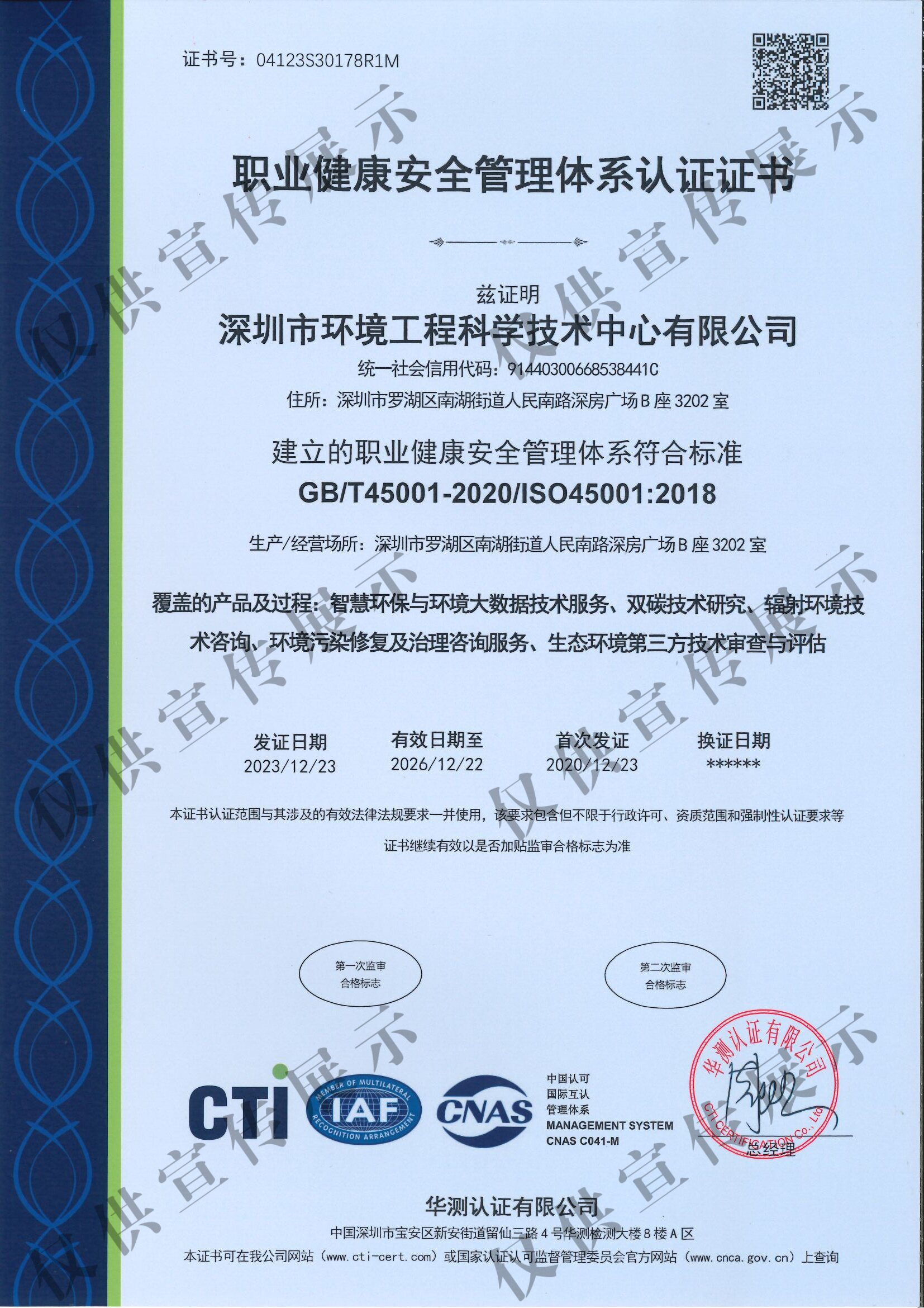 • 職業(yè)健康安全管理體系認(rèn)證證書