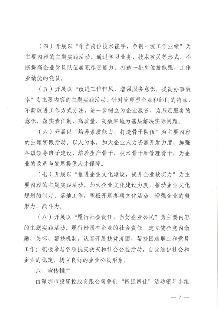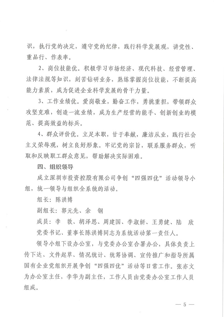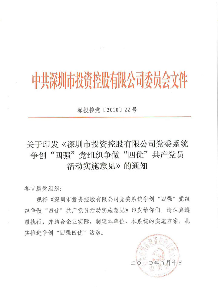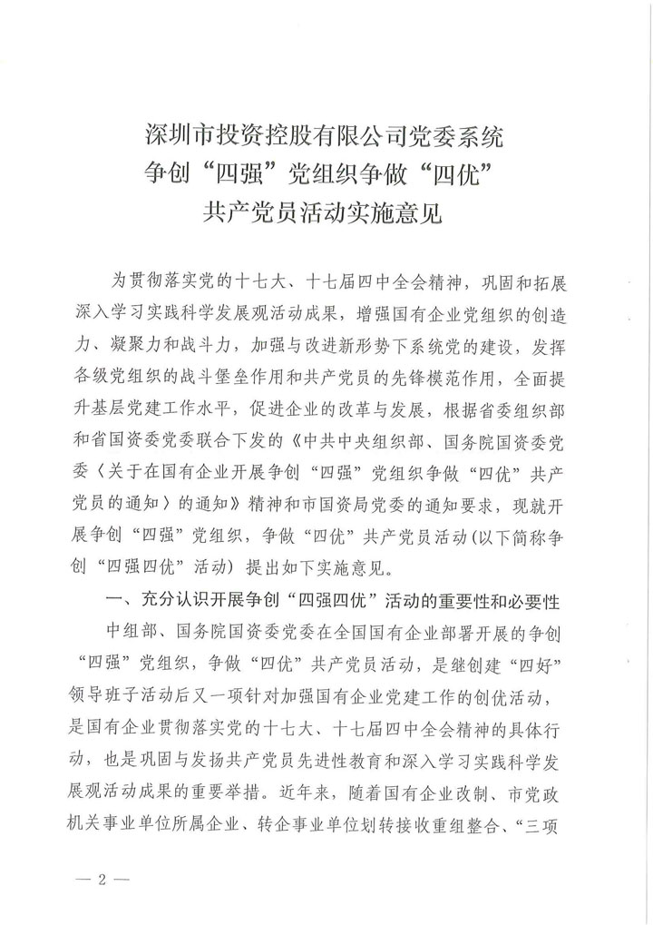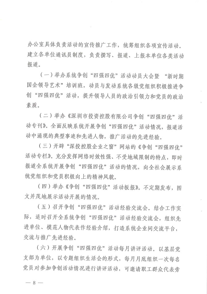 深圳市投控有限公司黨委系統(tǒng)爭創(chuàng)“四強四優(yōu)”實施意見