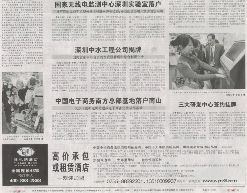 2009年11月18日下午,由我中心與匈牙利最大的環(huán)保公司AQUAPROFIT公司合作建立的深圳中水工程有限公司宣告成立,深圳市委常委、副市長呂銳鋒與匈牙利發(fā)展與經(jīng)濟(jì)部副部長沃爾由?拉斯洛為中水公司成立揭牌。