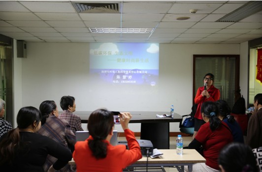 323日下午,環(huán)科中心志愿者和深物業(yè)集團(tuán)志愿者聯(lián)手走進(jìn)龍華新區(qū)風(fēng)和日麗小區(qū),運(yùn)用環(huán)保專業(yè)化技術(shù)知識,以貼近實(shí)際、貼近生活、貼近群眾的方式,為該小區(qū)居民舉辦了一場“低碳環(huán)保、生態(tài)文明——健康時尚新生活”的講座,大力倡導(dǎo)低碳、環(huán)保生活方式方法,講解如何做到生活低碳、環(huán)保?;顒由钍苄^(qū)廣大居民的熱烈歡迎和積極響應(yīng),他們表示要將學(xué)到的低碳知識應(yīng)用于日常生活中。