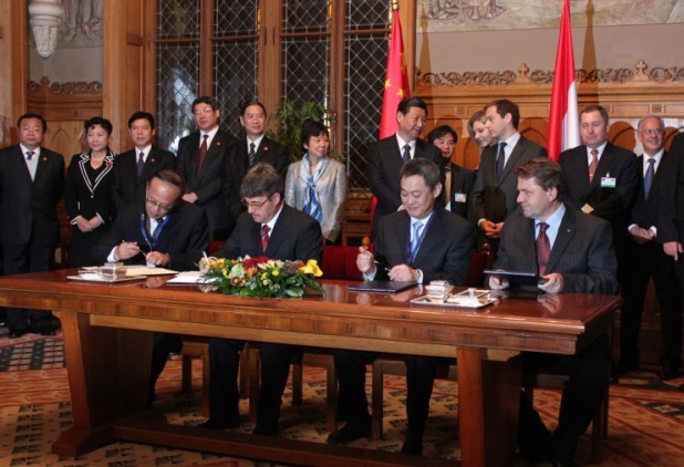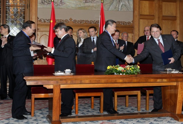 國家副主席習近平和匈牙利總理鮑伊瑙伊共同出席了雙方合作文件的簽字儀式。